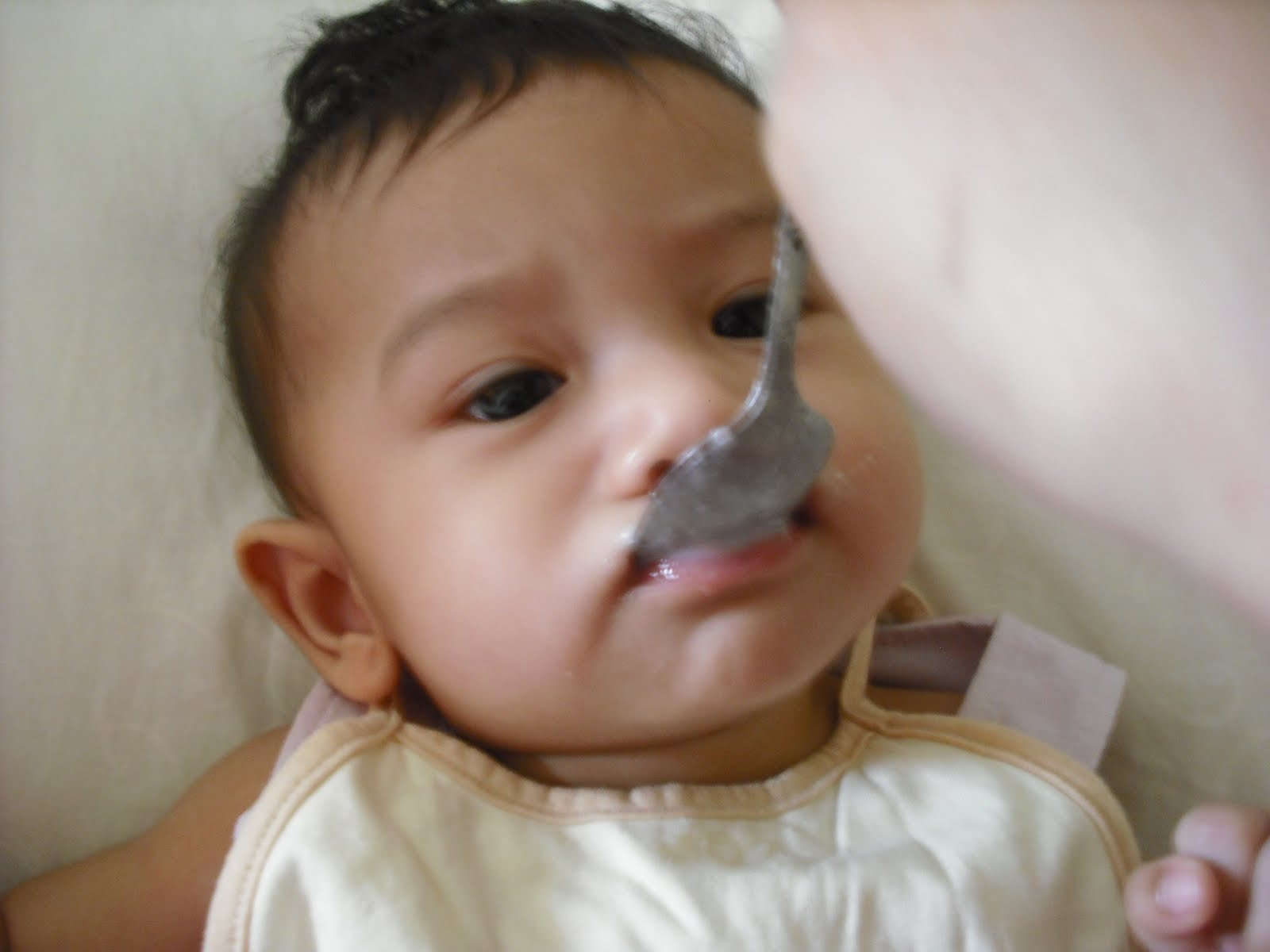 dia dah start dah.. tk mo.. tak bis pun cerelac to.. mybe baru lg.. (doc ckp bersabar) tgk tgk dia nk start engine dah.. muka dah sememeh.. merah dah sekitar mata, idung, mulut dah cebekk..